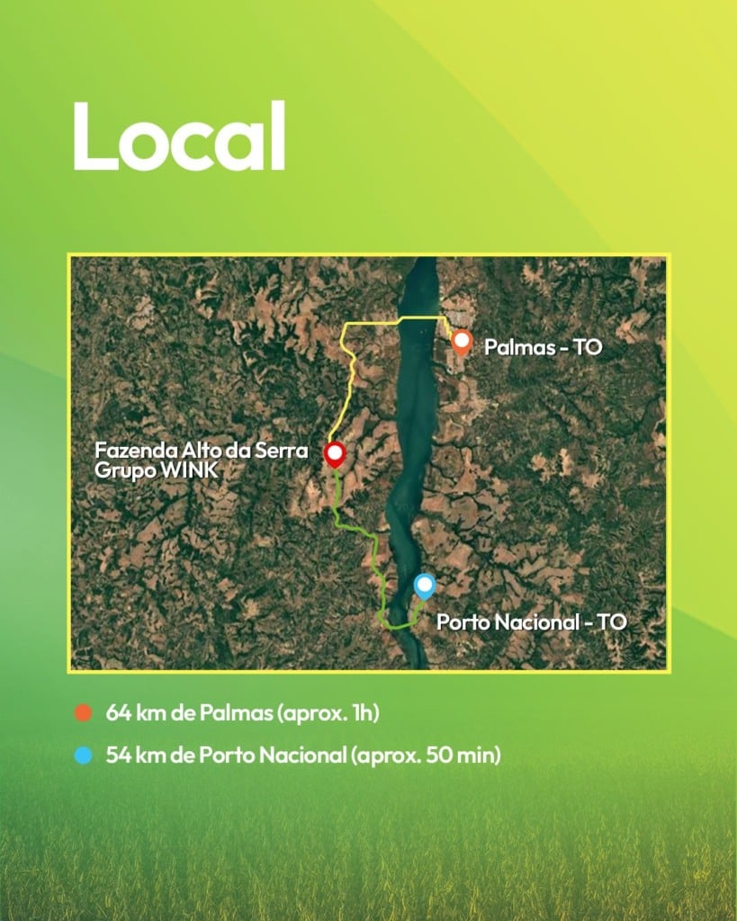 O local do encontro é na Fazenda Alto da Serra, do Grupo Wink, em Porto Nacional (TO). Para participar, basta acessar o link oficial do evento, preencher as informações solicitadas e confirmar a presença.