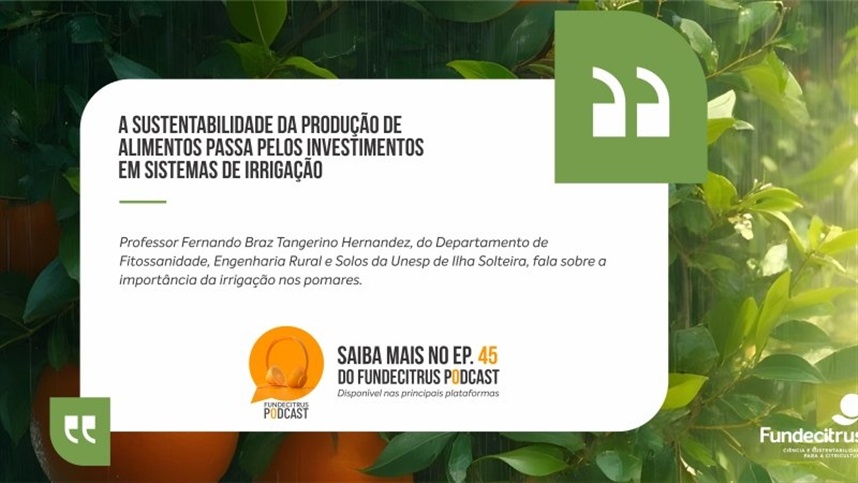 A edição 45 do Fundecitrus Podcast tratou sobre a importância da irrigação dos pomares como forma de reduzir os impactos provocados pelos longos períodos de estiagem.